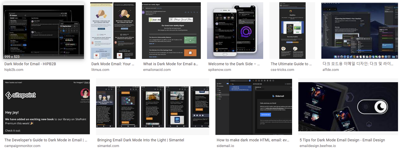▶ 요약: 시력 보호를 위해서 다양한 디바이스가 '다크모드'를 지원하고 있다. 이메일도 흐름에 따라가야.....