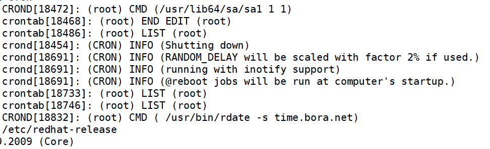 [root@ log]# systemctl restart crond - 실제 적용을 위해 크론데몬 재시작