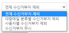 대량메일 분류별 수신거부자 제외: 선택한 분류로 등록된 수신거부 신청자 메일주소 제외