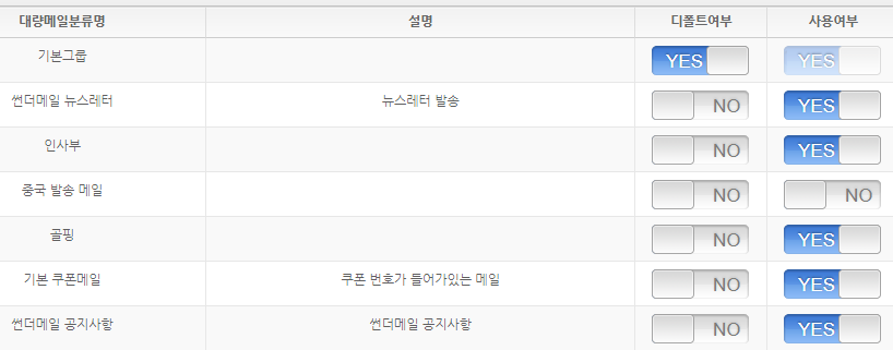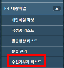대량메일 - 수신거부자 리스트 - 대량메일분류