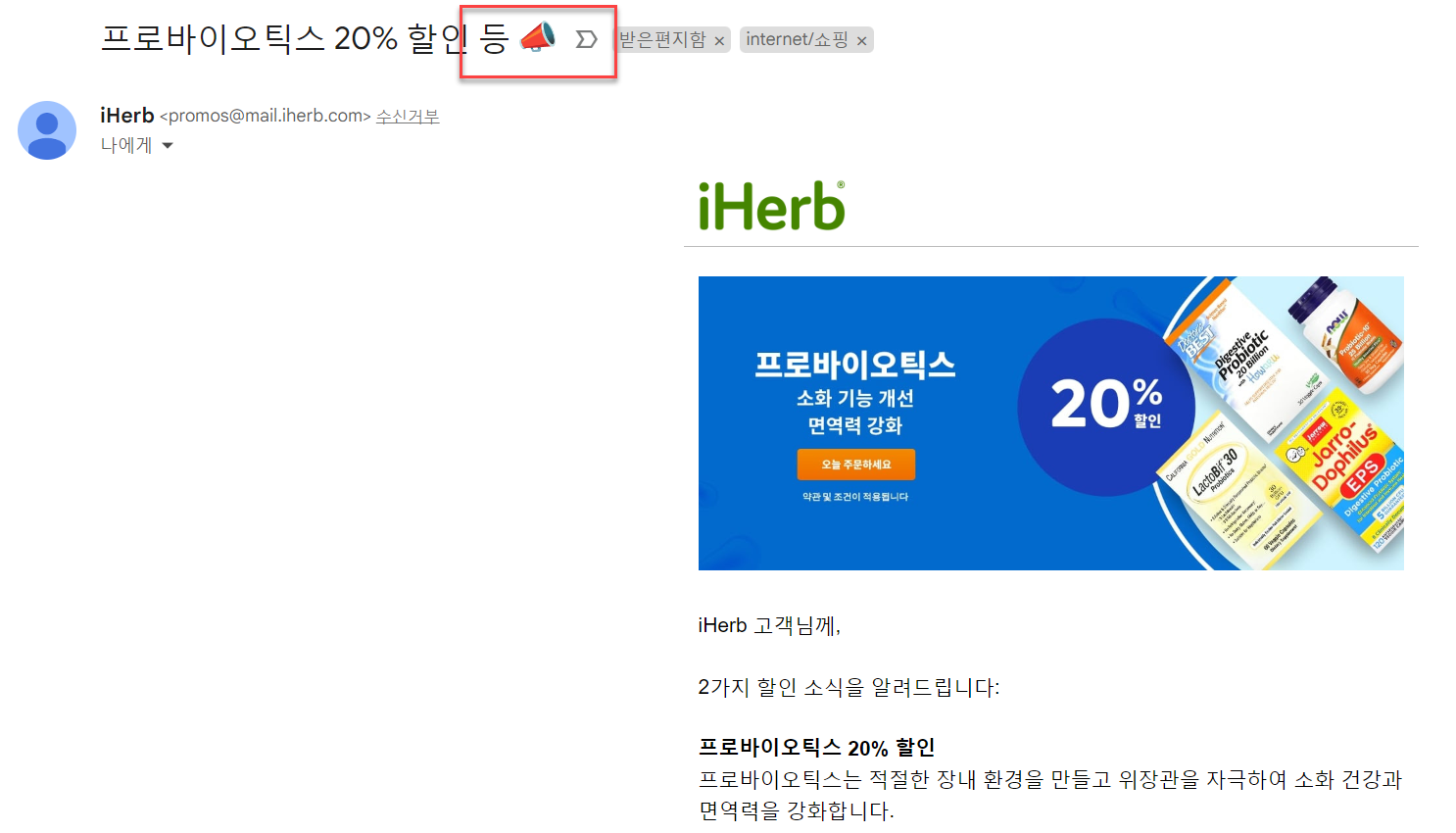 실제 아이허브라는 비타민 판매 쇼핑몰에서 사용된 사례가 있는데요. 아래 스크린샷을 참고하세요.