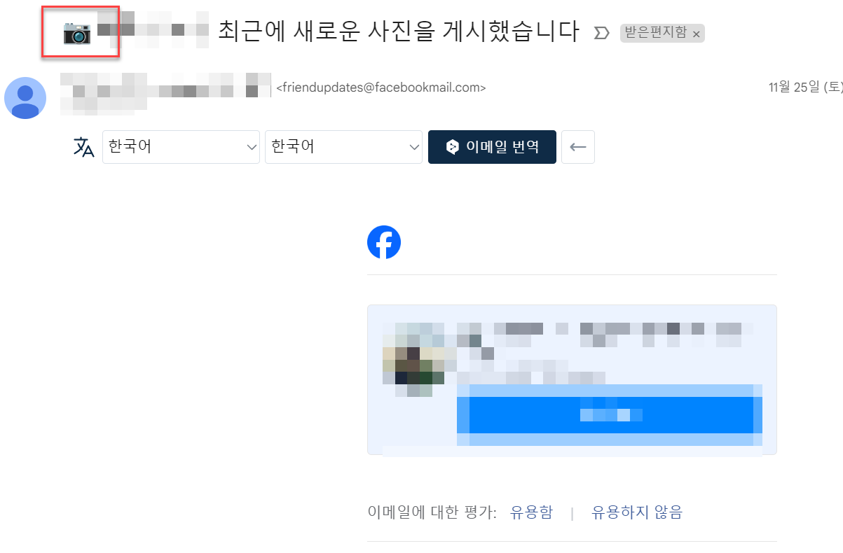 페이스북 안내 메일에서 실제 사용 되고 있는 이모지입니다.