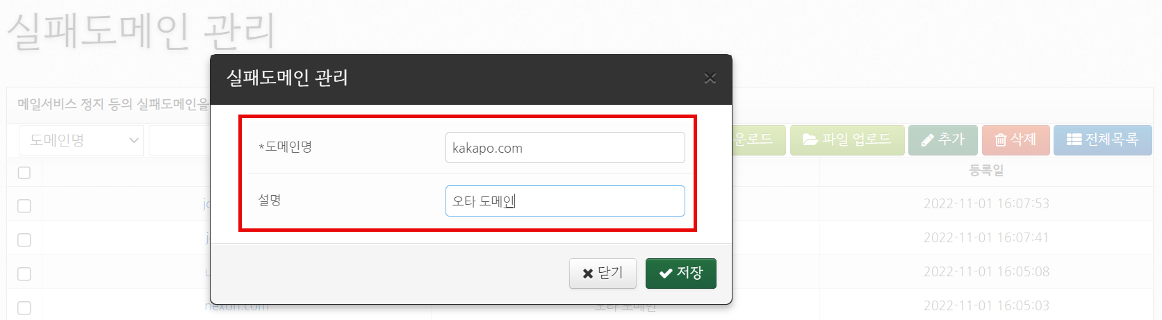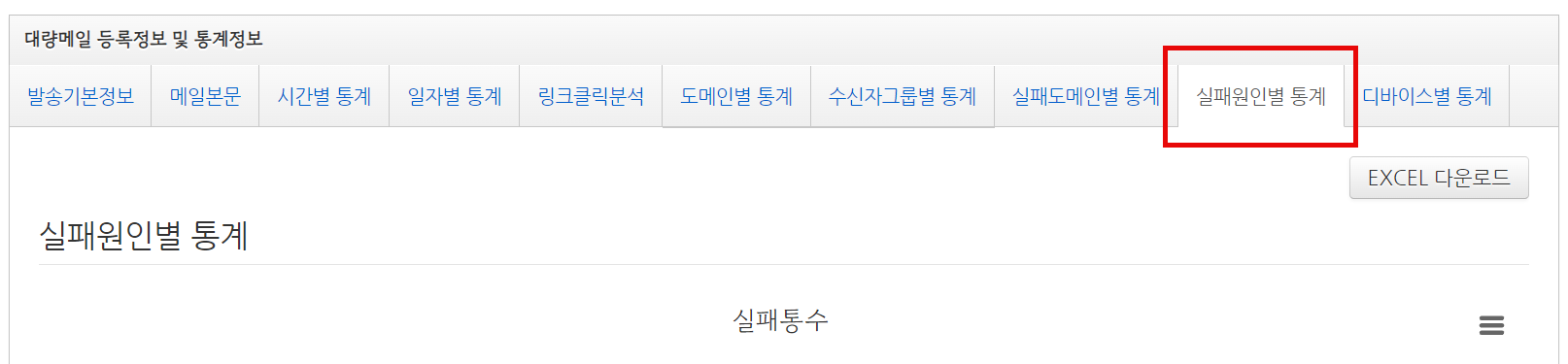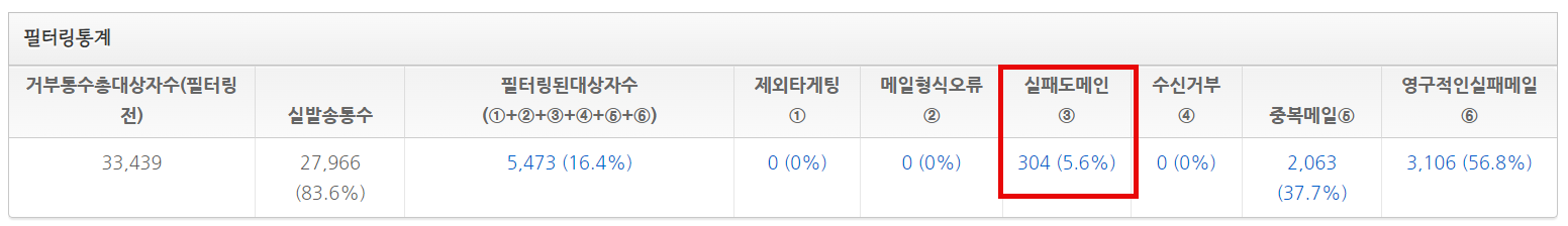 1. '실패원인별통계'의 '기타오류' 중 포탈사이트 오타도메인을 '실패도메인관리'에 추가하여 발송 예외처리로 불필요한 발송 감소