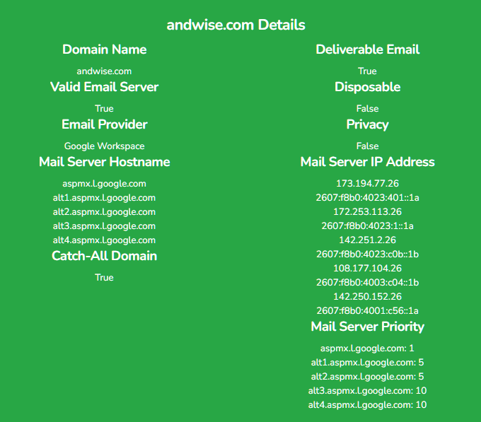 상세한 정보는 없지만 해당 도메인의 수신서버 주소 정보를 빠르게 확인할 때 유용한 것 같네요.