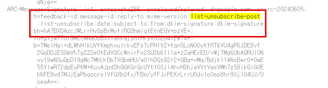 메일 헤더 부분에, List-Unsubscribe-Post 관련 부분을 확인 할 수 있습니다.
