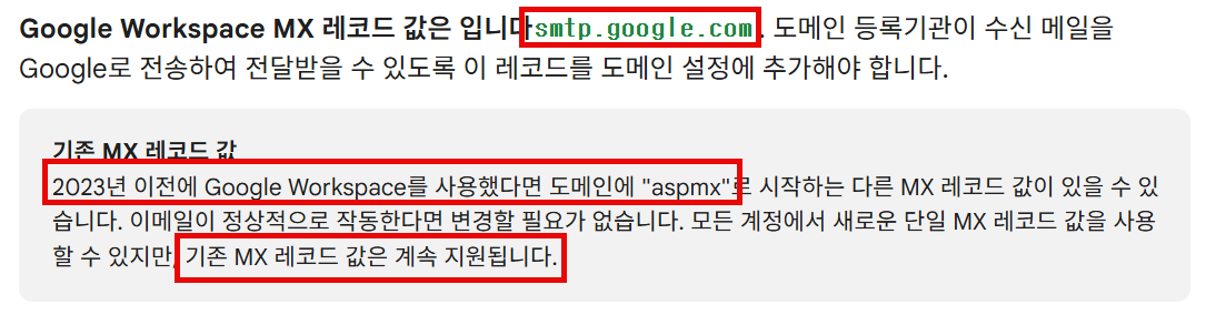 구글의 기업용 그룹웨어 솔루션인 워크스페이스의 수신서버 메일 주소가 2023년쯤 변경 된 것 같습니다.