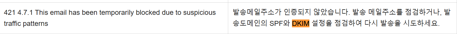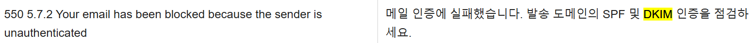 네이버 SMTP 오류 응답코드의 DKIM 부분이 추가 됨