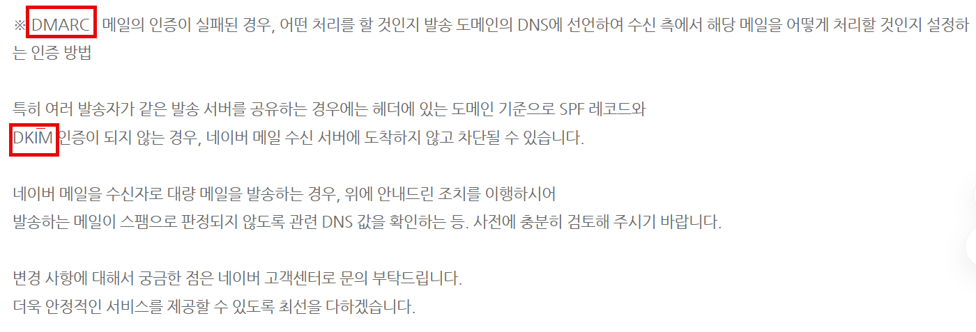 네이버메일 DKIM 인증 관련 공지 내용 소개