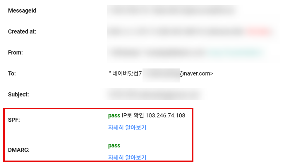 ※ DKIM : 발송 과정에서 이메일 헤더에 암호화된 서명을 추가하여, 수신 서버에서 해당 서명을 통해 메일 내용이 수정되지 않았음을 확인할 수 있는 인증 방법