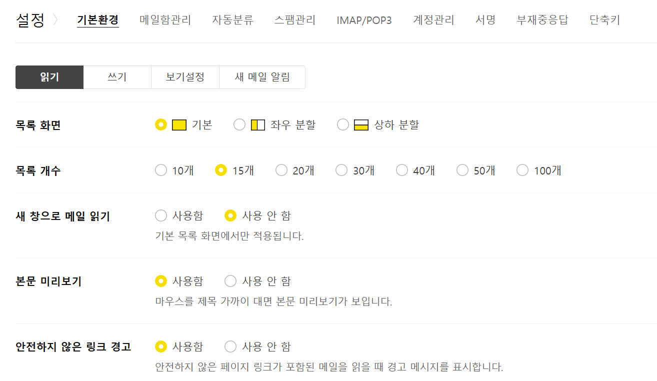 다음 메일 차단 증상 설명